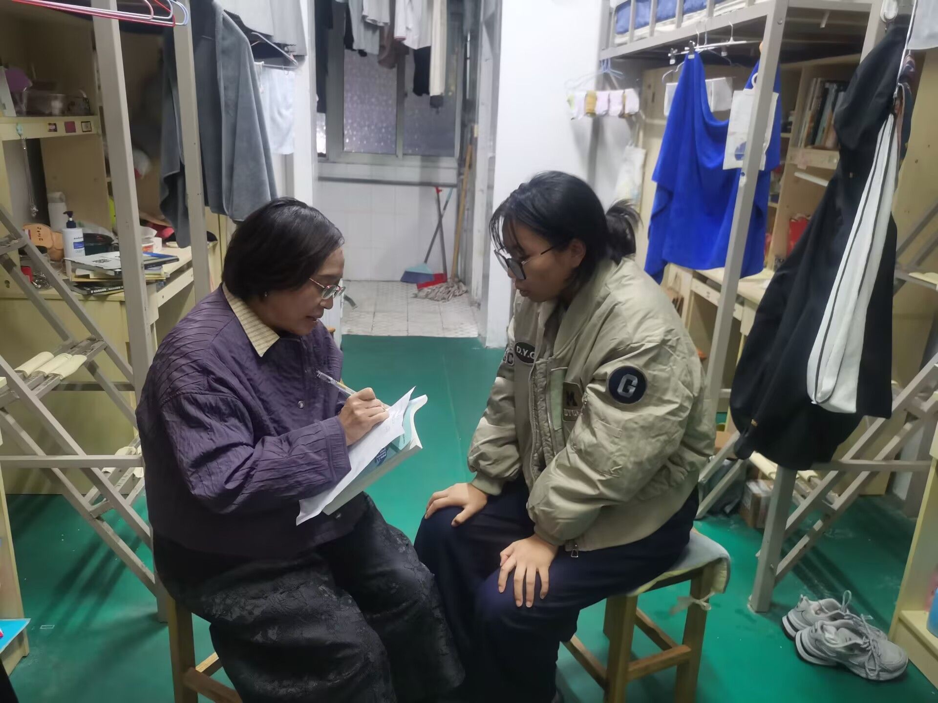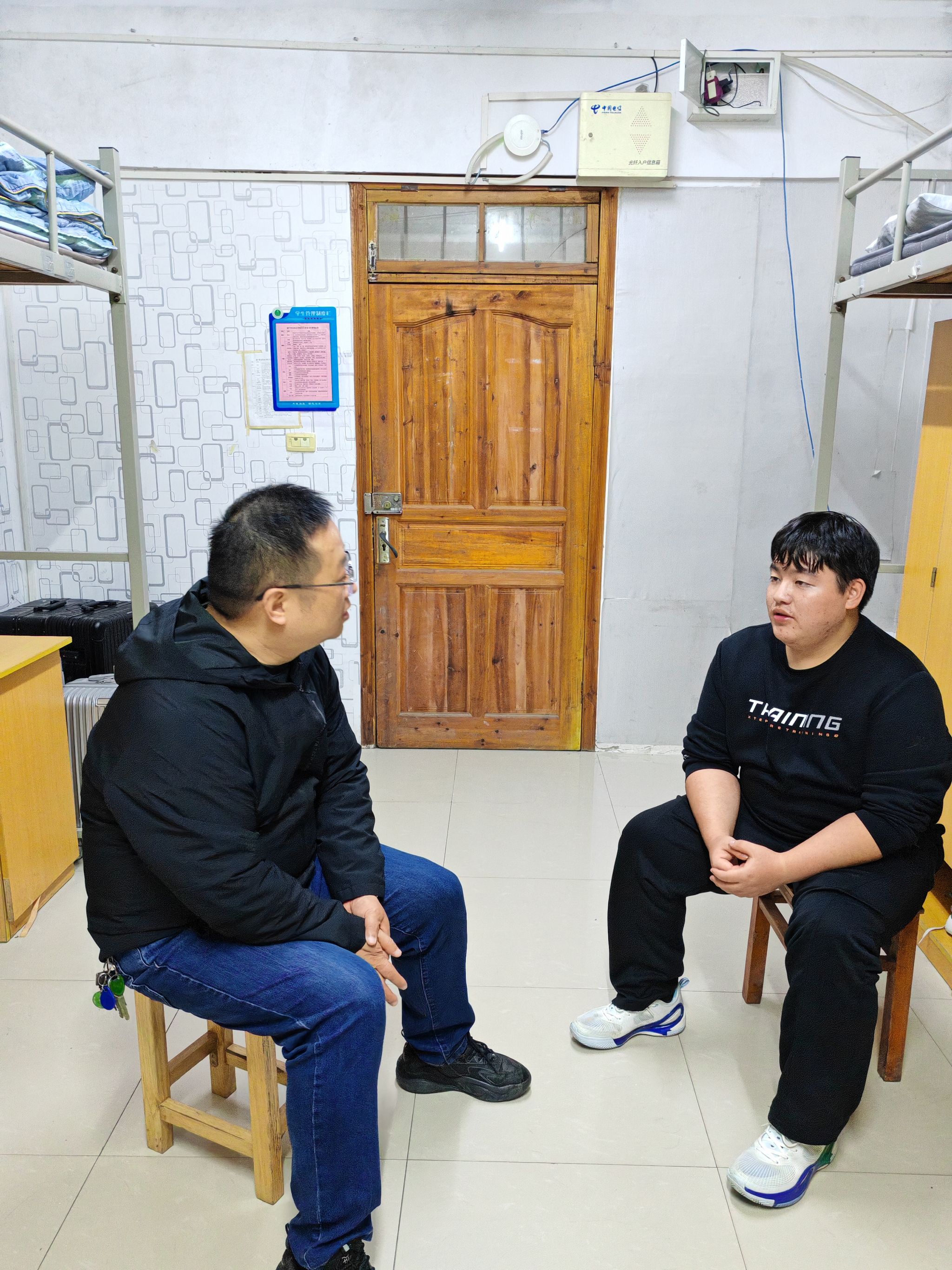10月20日晚,室外气温骤变,但是寝室里充满了温暖的氛围。学院党总支书记韩飞、院长余永欢带领部分教师来到结对帮扶的少数民族学生寝室,与同学亲切交流,通过深入了解同学们的家庭、思想、学习和生活等情况,与学生建立深厚感情,有针对性地开展思想政治教育,加强思想引领,引导学生积极践行社会主义核心价值观,强化学生爱国、爱党、爱校情怀,帮助他们树立自信、稳定思想。同时帮助少数民族学生解决学习、生活等方面存在的实际困难和具体问题。