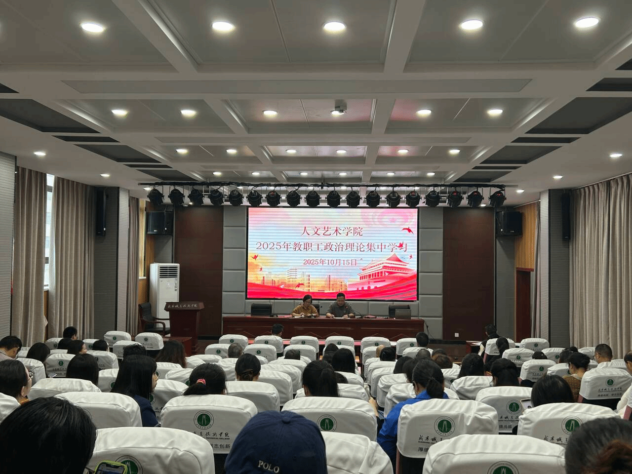 10月15日下午,人文艺术学院在教育实训中心201召开2025年度第11次教职工政治理论集中学习暨全体教职工大会。会议由学院党总支书记韩飞主持,全院教职工参会。