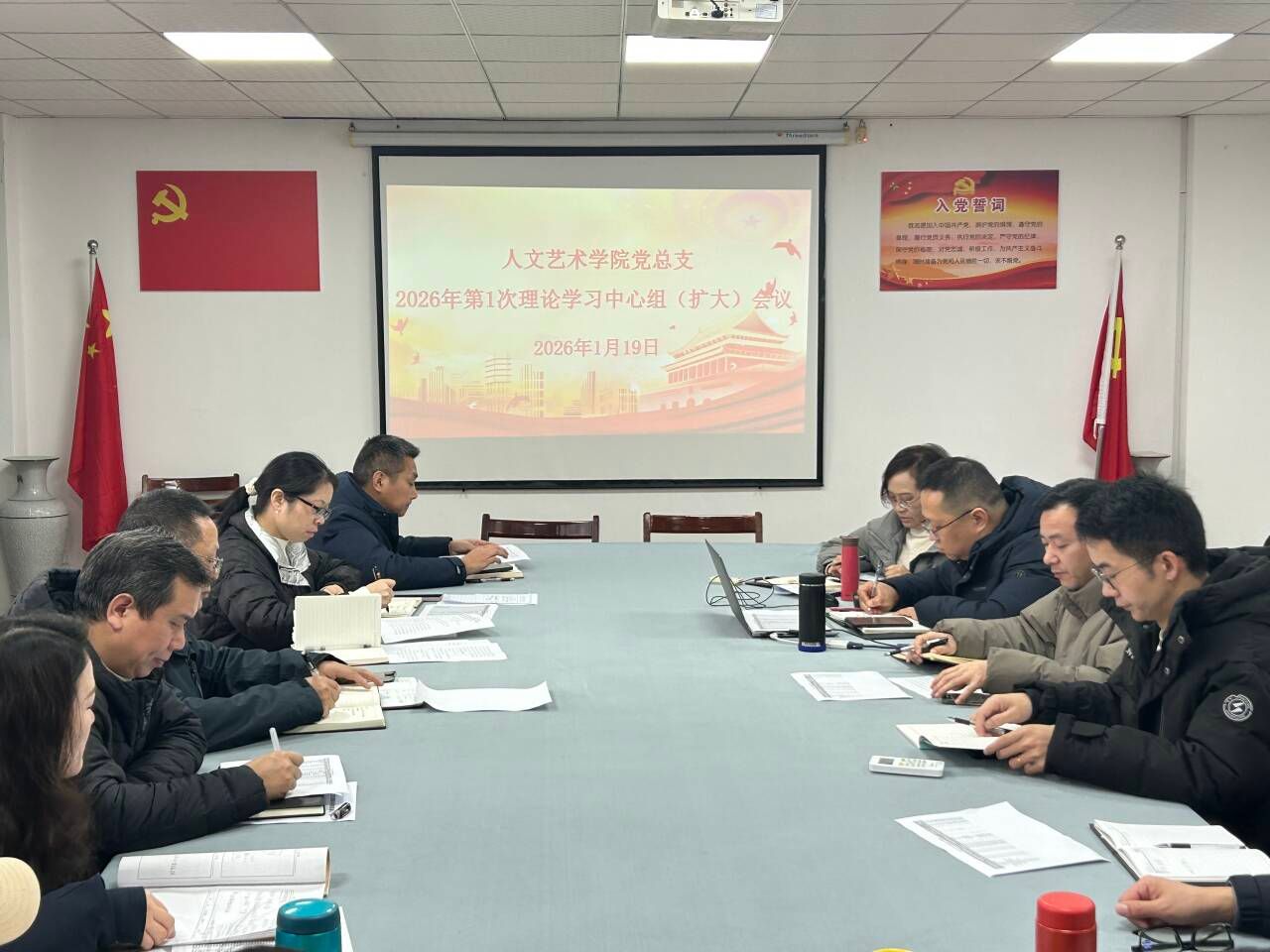 1月19日,人文艺术学院党总支理论学习中心组举行民主生活会会前学习研讨暨2026年第1次集体学习会。学院党总支理论学习中心组成员、各党支部书记、部门负责人参加学习,会议由党总支书记韩飞主持。